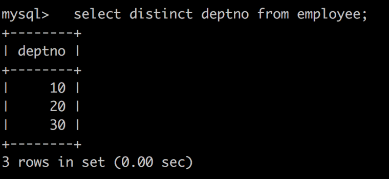 예제2 : 사원 테이블의 부서번호를 중복되지 않게 출력하시오.